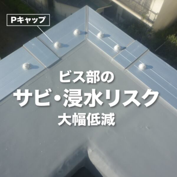 防水層端末押え金物の効果をグッと高める漏水対策Pキャップです。