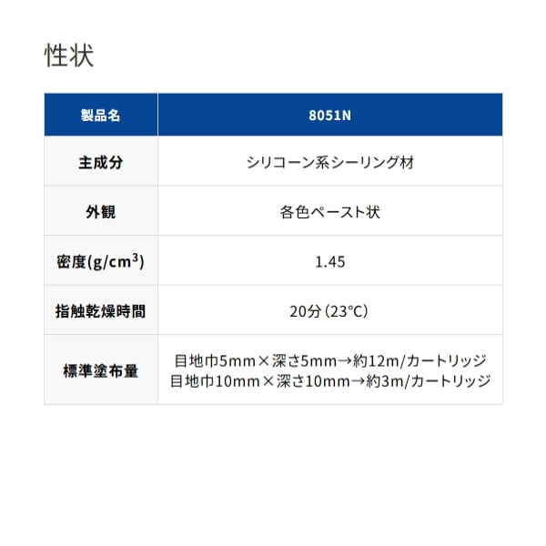 8051Nは強靭で耐疲労性に優れたアルコールタイプの防カビ剤入り シリコーンシーラントです。