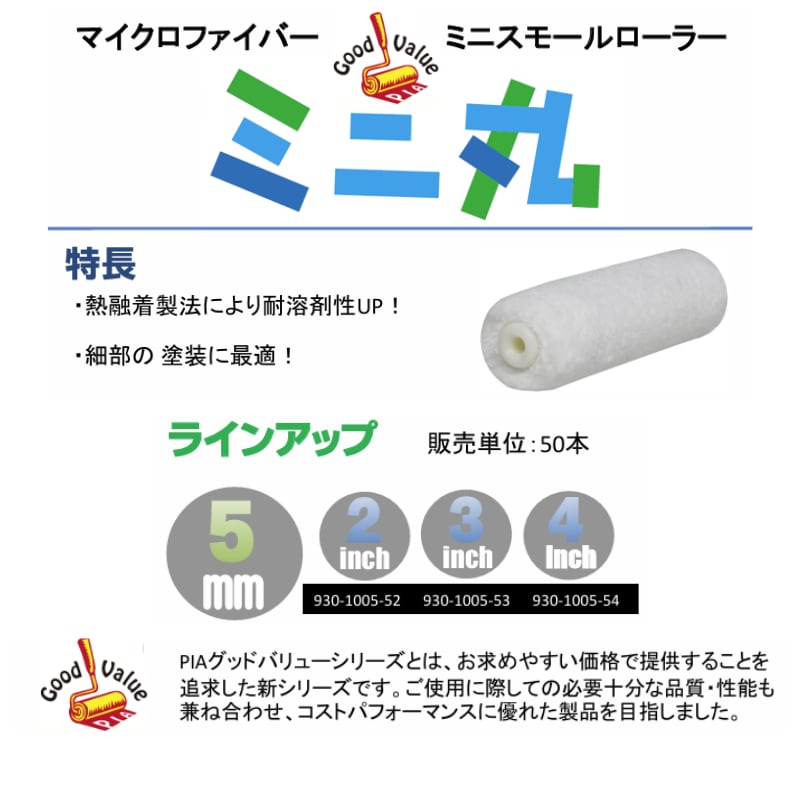PIA ミニスモールローラー ミニ丸 2インチ 5mm 50本箱 の商品ページです。
