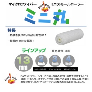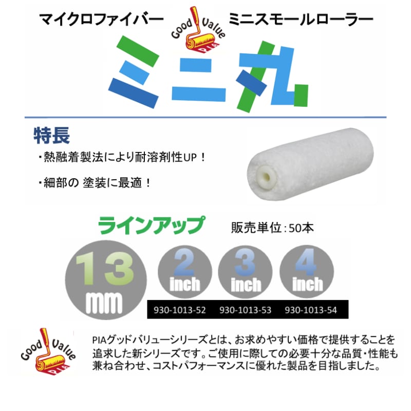 PIA ミニスモールローラー ミニ丸 3インチ 13mm 50本箱 の商品ページです。