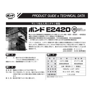 「ボンド E2420」は、エポキシ樹脂の優れた接着力・耐薬品性を活かしながら、柔軟性を持たせた可とう性注入用エポキシ樹脂です。