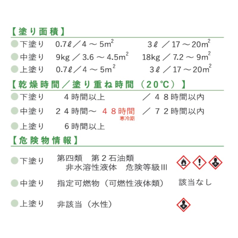 【乾燥時間/塗り重ね時間】(20℃)