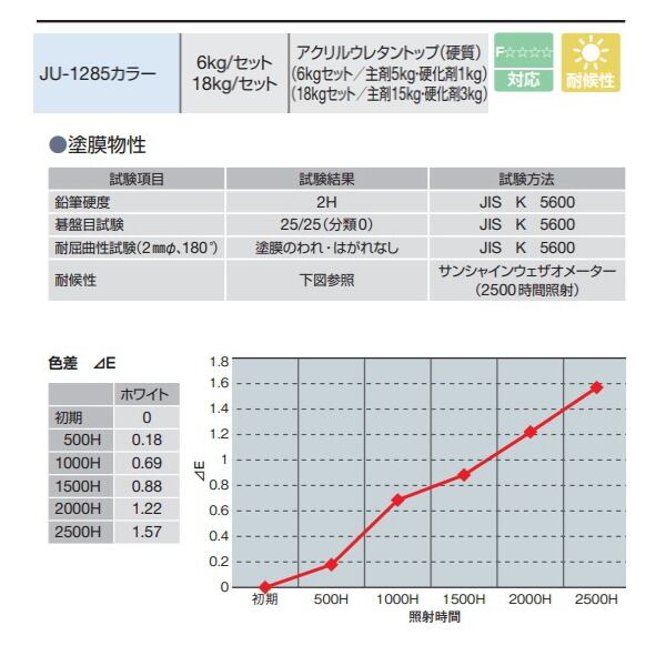 アイカ工業の耐候性トップコート JU-1285 6kgのページです。 受注生産で、納期 1週間ほどです。 本商品は軒先渡し、または車上渡しです。