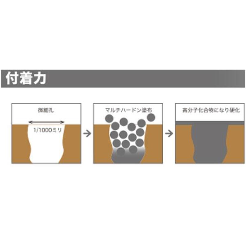 一般の塗料は基材の表面に付着しているだけなので剥離することがありますが、マルチハードンは微細孔まで浸透し、塗膜を形成している為、強固な付着力を発揮し剥離するおそれがありません。