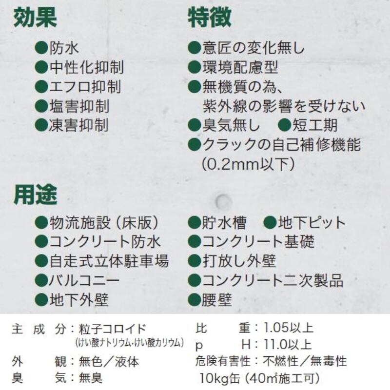 けい酸塩系表面含浸材 インナーコート 旧商品名 RCインナーシール 10kg缶 アールシージージャパン 無機質浸透性 コンクリート防水 中性化抑制