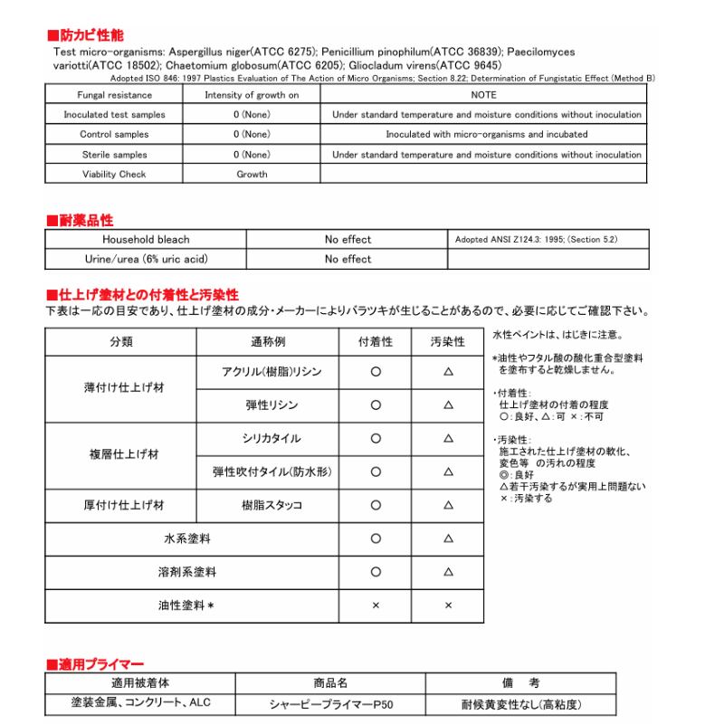 ●低温時の押し出し性に優れ、耐候性も良好です。