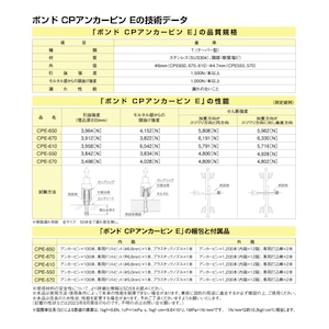 ボンドCPアンカーピンEはステンレス製の「注入口付拡張子打込み型アンカー」であり、コンクリート躯体と仕上げ層を拡張子とエポキシ樹脂で固定します。