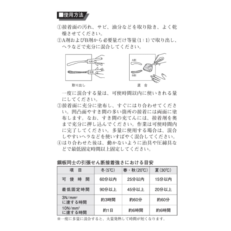 金属製機械・器具類の短時間接着、ひび割れ充てんに。