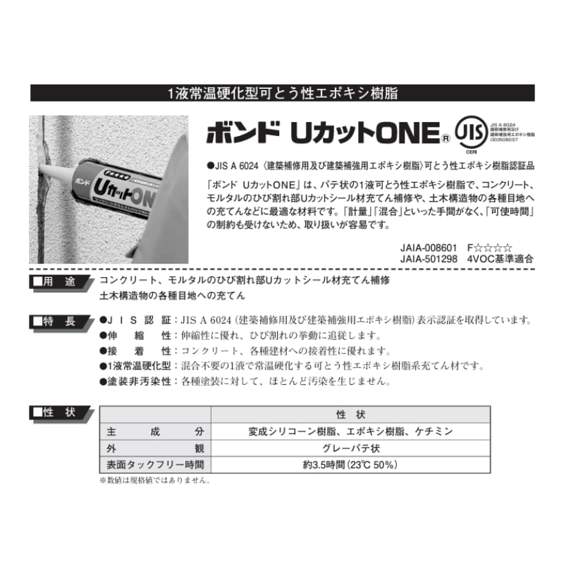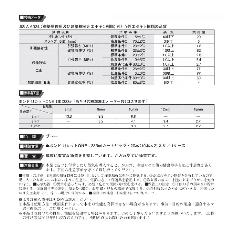 コニシ ボンド UカットONE 333ml 10本箱 土木建築用エポキシ樹脂 コンクリート モルタル ひび割れ部Uカットシール材充てん補修 ゴショ