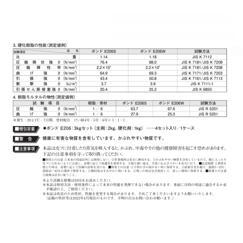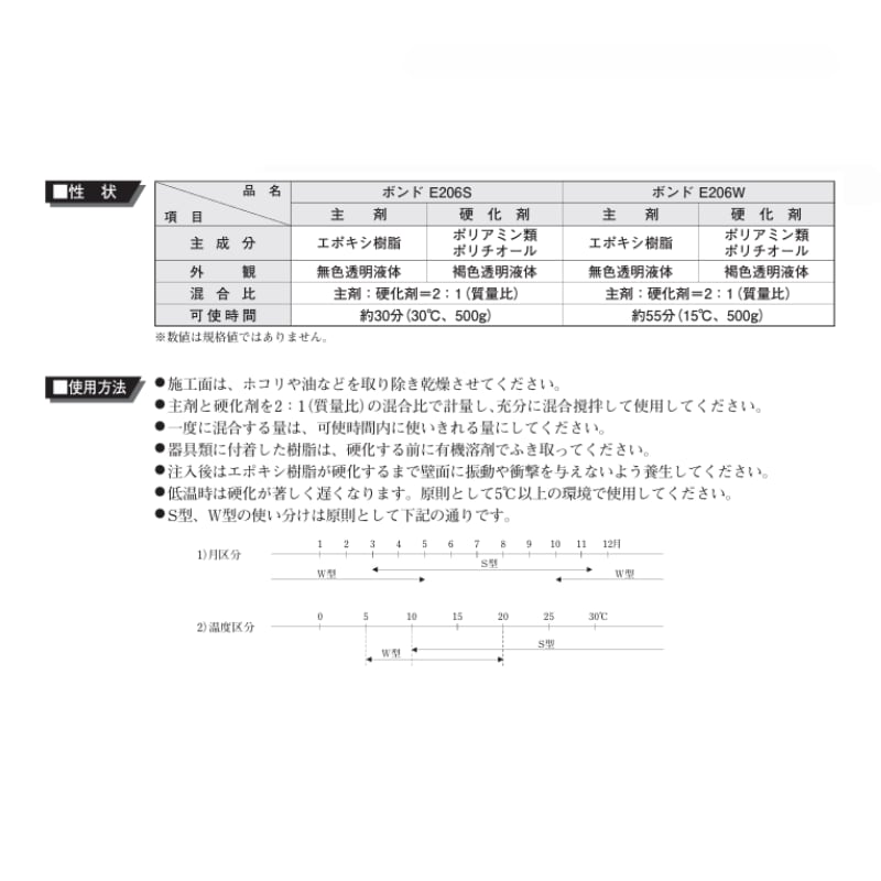 コニシ ボンド E206 夏用 冬用 3kgセット 土木建築用エポキシ樹脂 ひび割れ注入 ゴショ