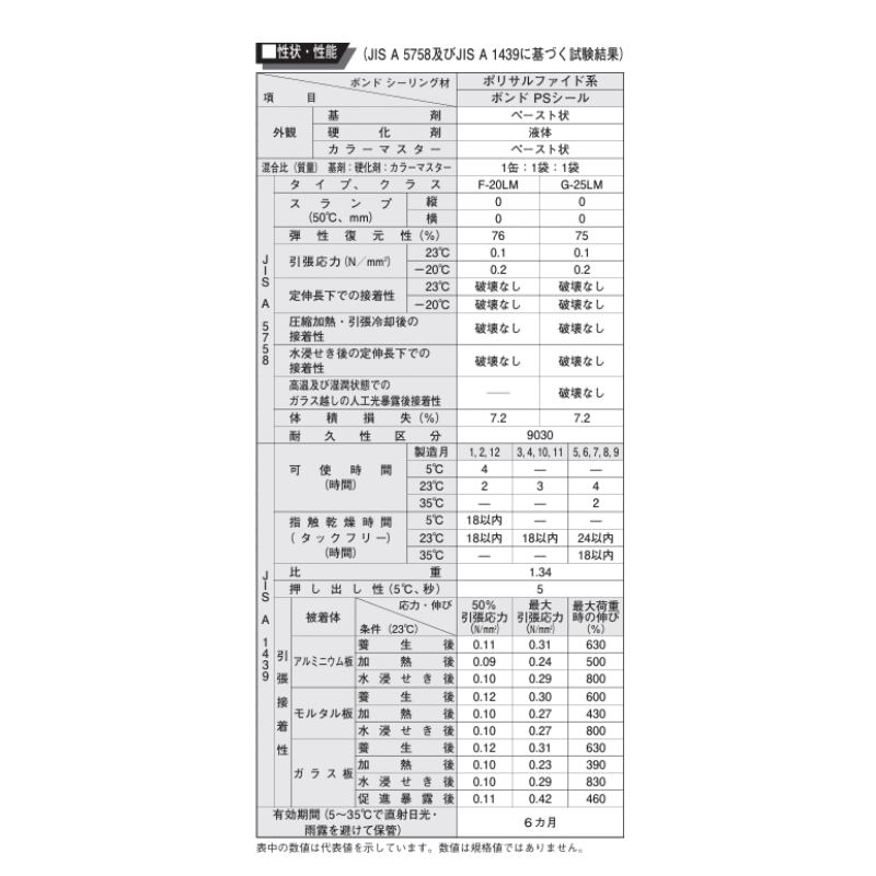 ●JIS A 5758 のタイプ及びクラスはF-20LM、G-25LMに適合します(耐久性区分は9030)。