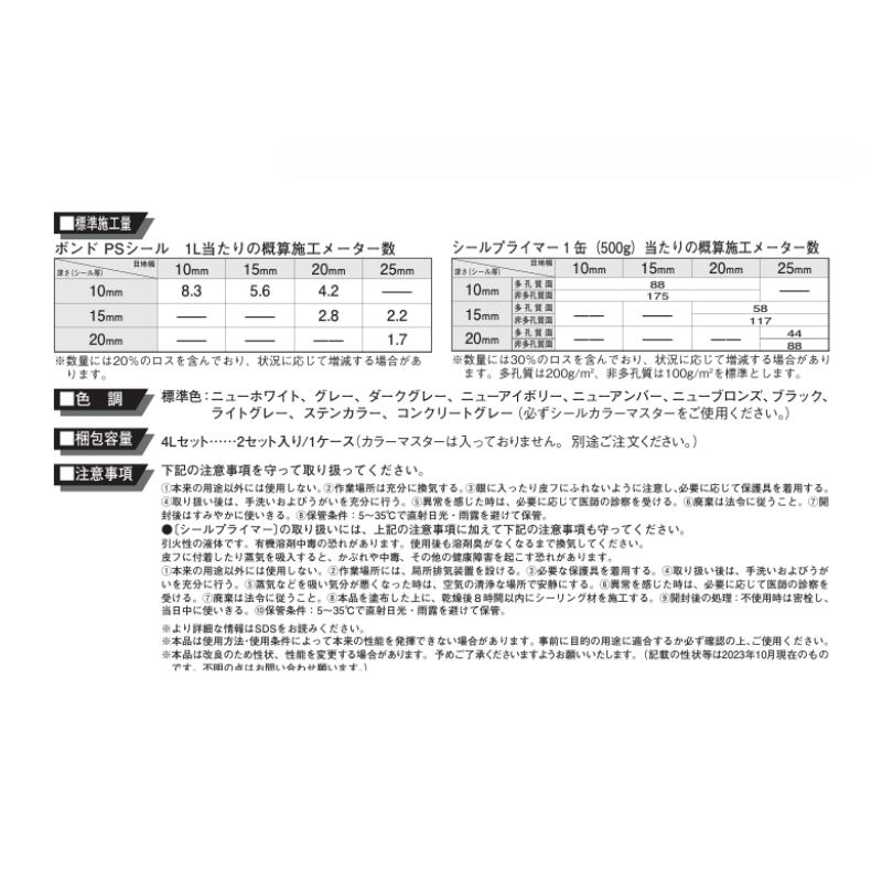 コニシ ボンド PSシール 4L 2セット箱 2成分形ポリサルファイド系 カラーマスター別売り ゴショ