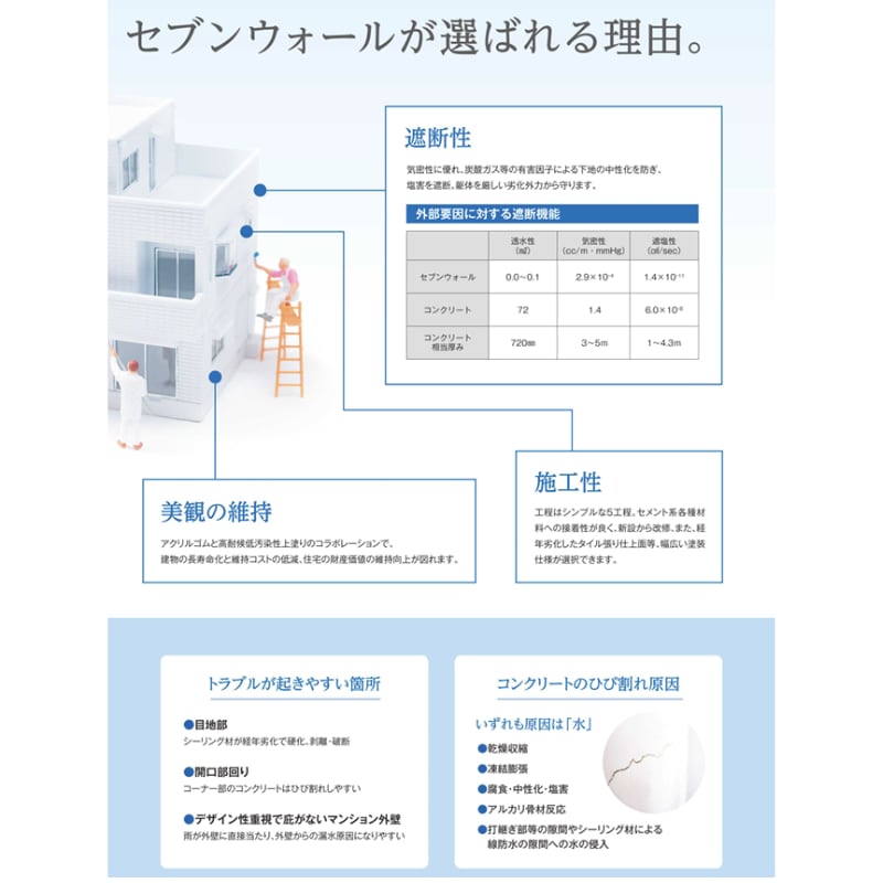 水性セブンウォールトップ W-SS は主材層の汚れを防ぎ、美観を保持するために使用します。