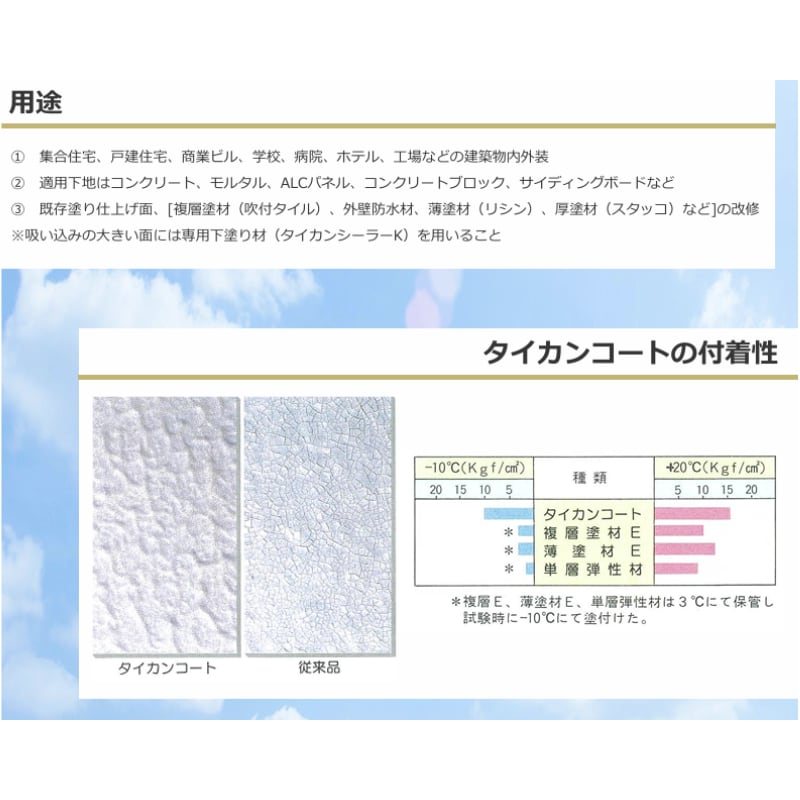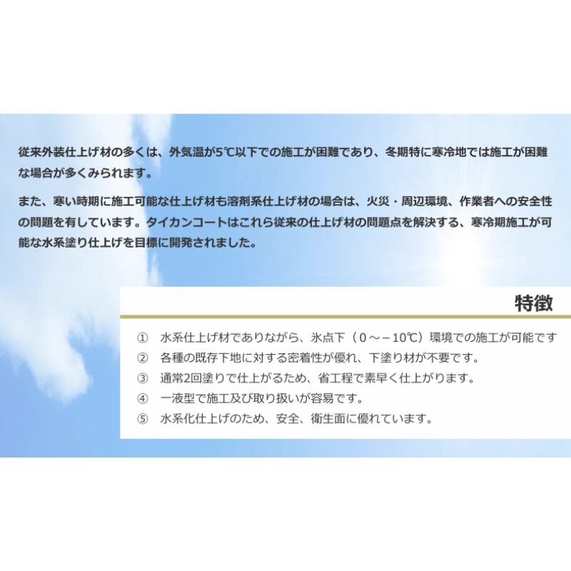 タイカンコートを希釈する際、気温0度以下の時にはタイカンコートうすめ液を使用してください。