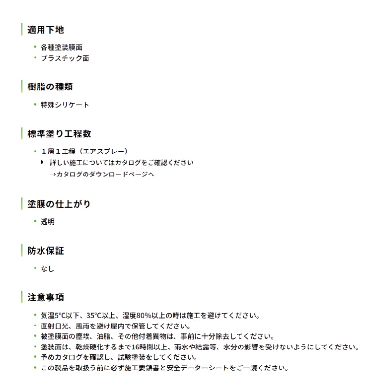 ・被塗膜面の塵埃、油脂、その他付着異物は、事前に十分除去してください。