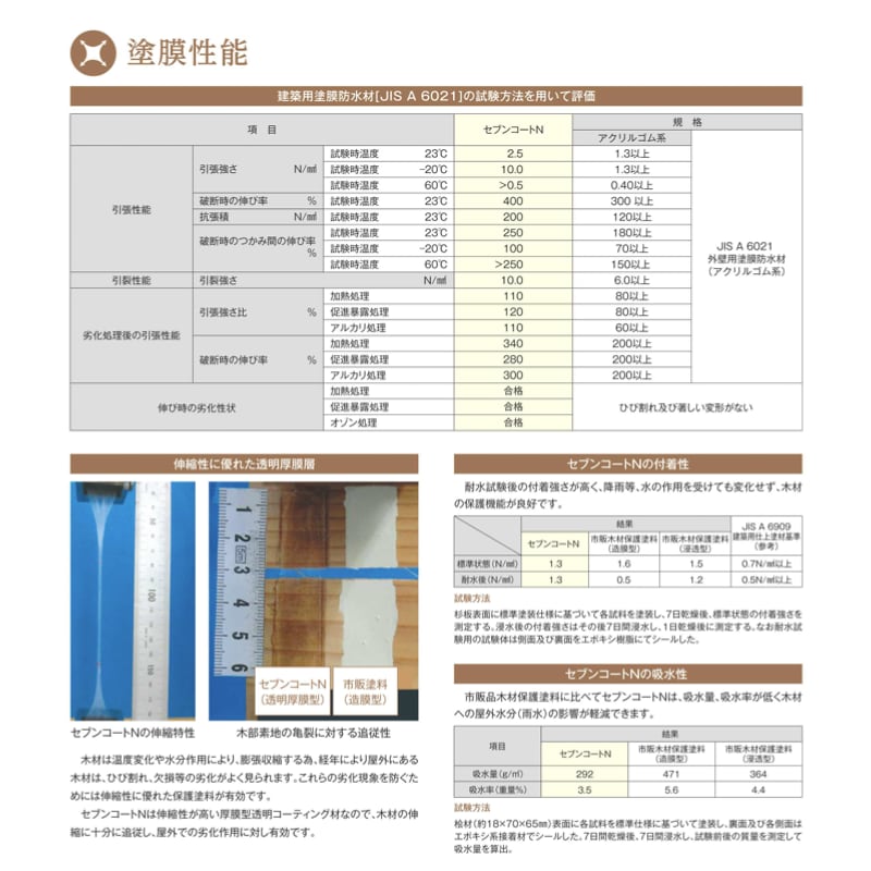 雨水や腐食細菌の侵入を防ぐことで、木材を変色、腐朽等から保護します。