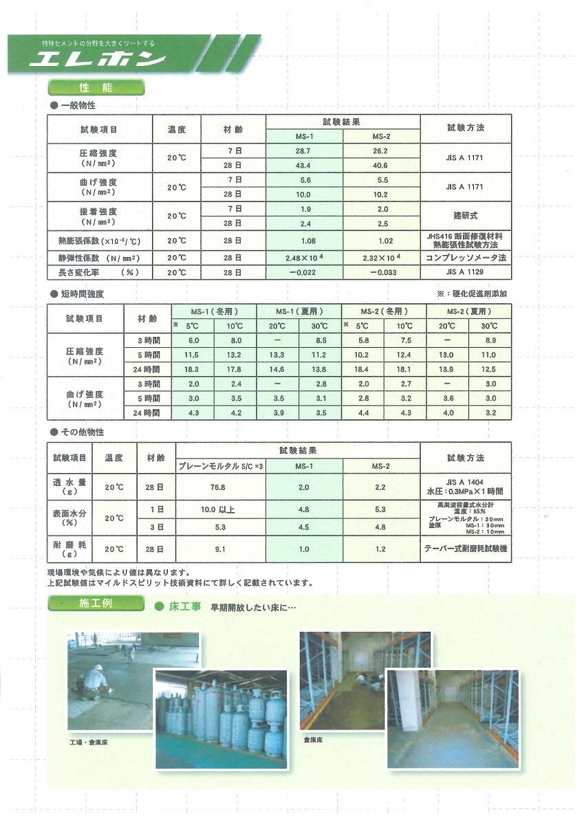 マイルドスピリット MS-2 粉体のみ 薄塗り用 25kg袋 エレホン 繊維補強型 超速硬性 ポリマーセメントモルタル 補修材