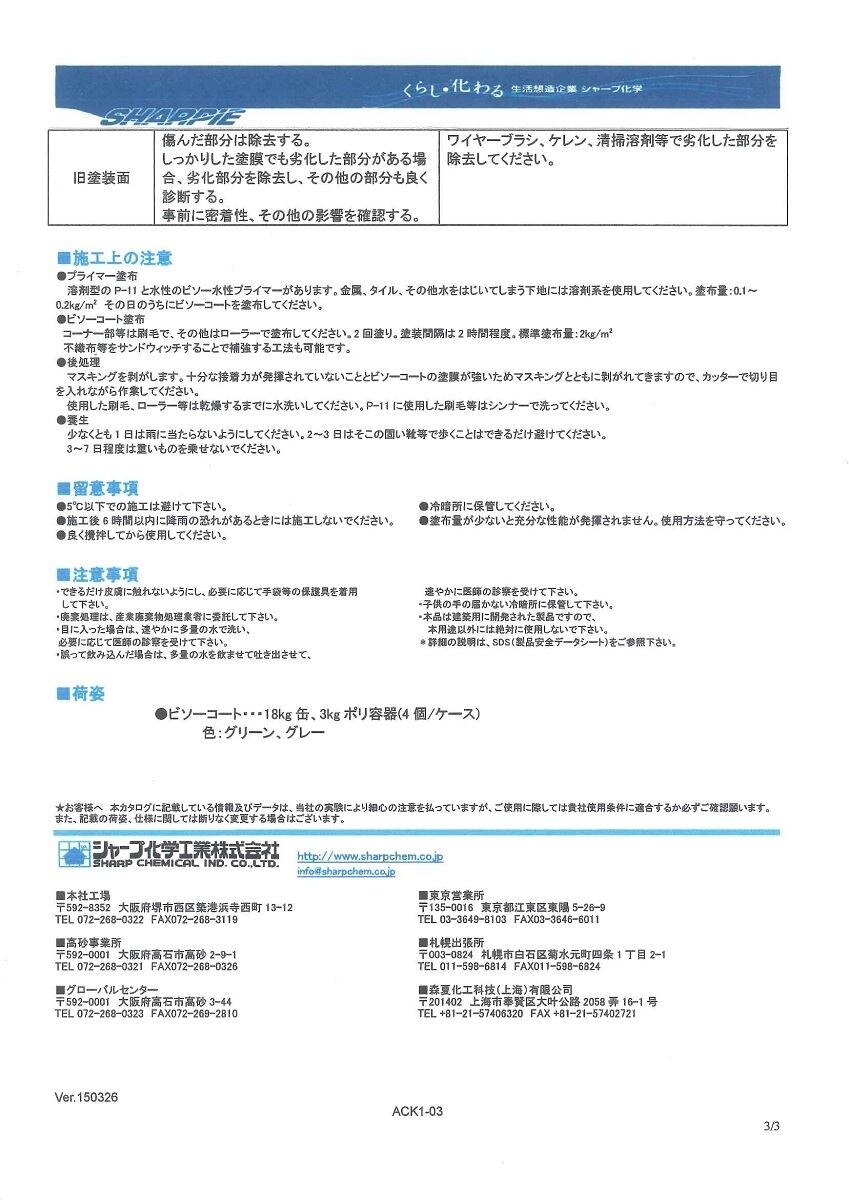 塗布量 0.1から0.2kg/平米 その日の内にビソーコートを塗布してください。