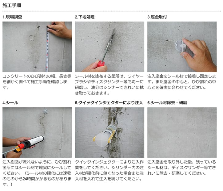 アイカ クイックインジェクター工法は施工作業が簡単 ひび割れ 注入工法です。