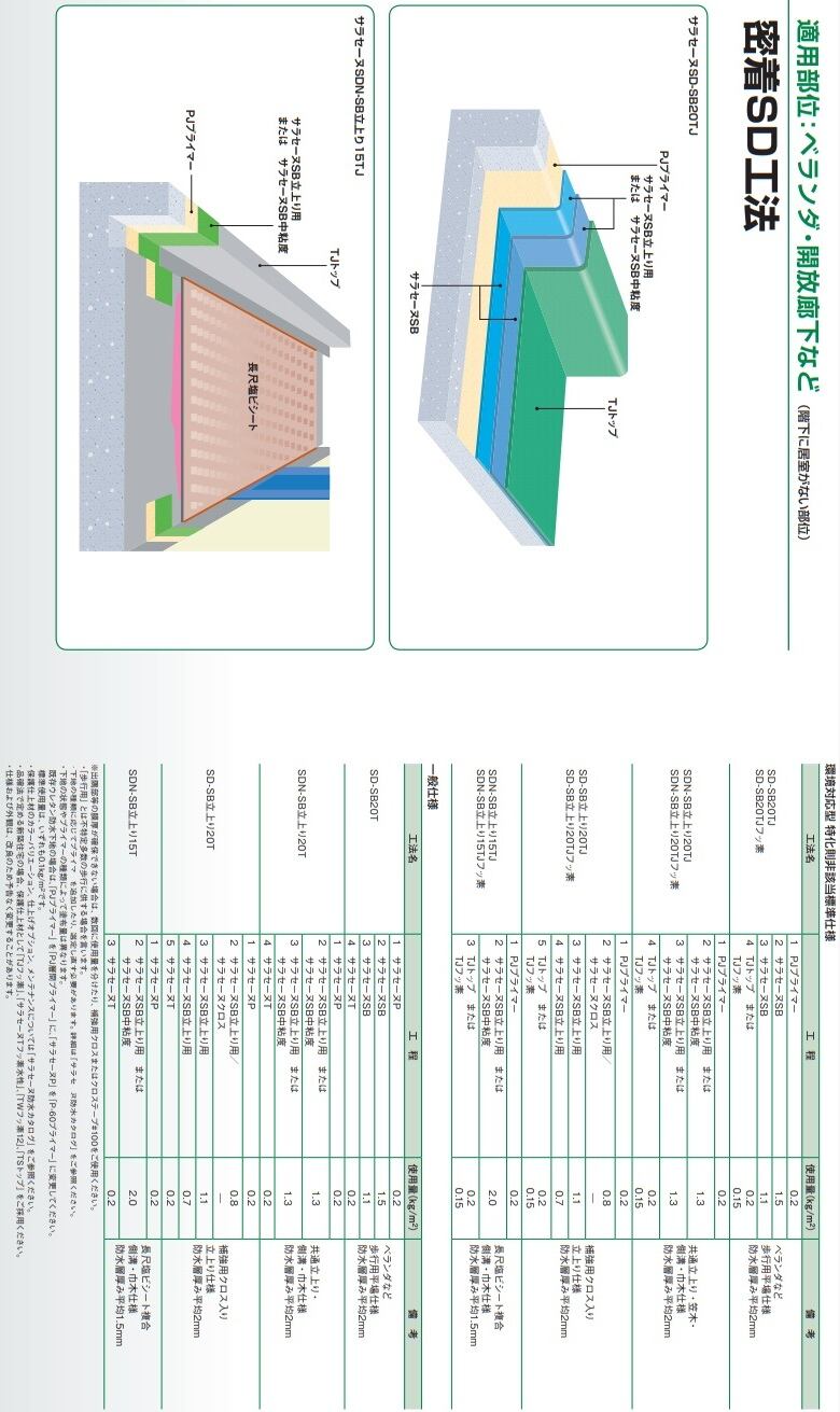標準塗布量 密着SD工法にて 約2平米 2mm厚 2.6kg/平米 2回塗り