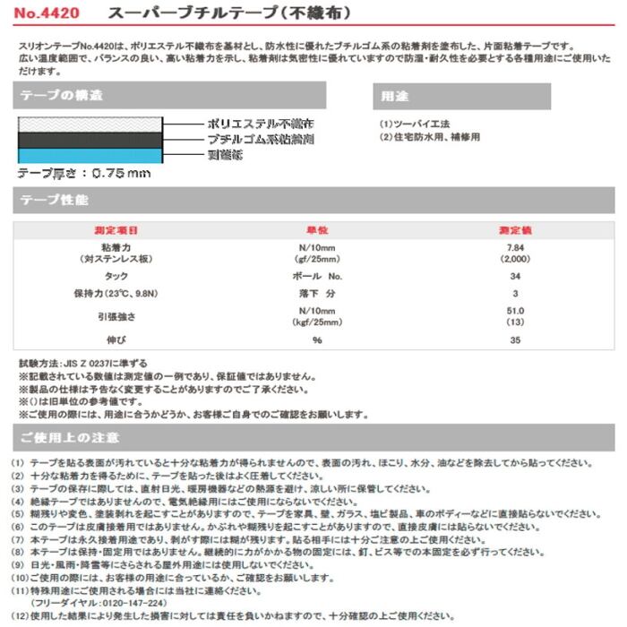 スリオンテック ブチルテープ NO.4420 幅75mm 20m巻 12巻箱 1350円巻 片面スーパーブチルテープ 防水用ジョイントテープ 不織布 ツーバイ工法 マクセル Maxell ホリ
