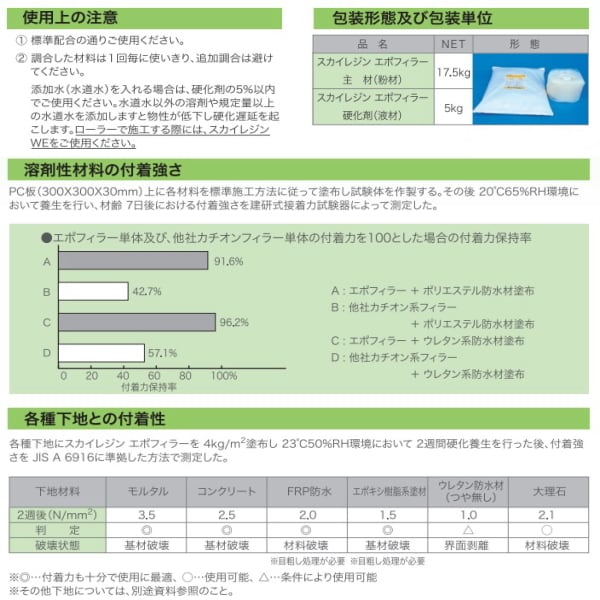 スカイレジン エポフィラーは水系エポキシポリマーセメントモルタル 溶剤型塗布材料の下地調整材に最適です。