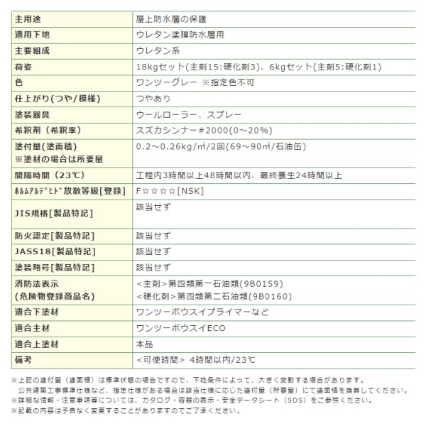ワンツーボウスイトップコートは、ウレタン塗膜防水層保護用 溶剤2液形ウレタン樹脂系塗料です。