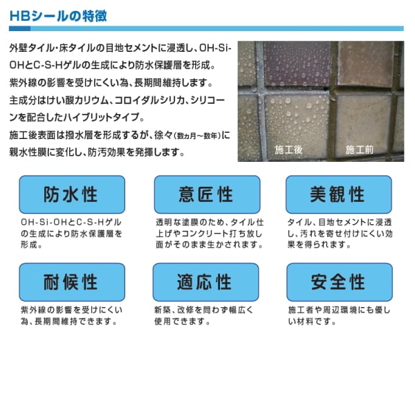HBシールは超微細粒子とシリコーン(撥水剤)の混合液、施工後、撥水効果、次第に親水性に変化します。